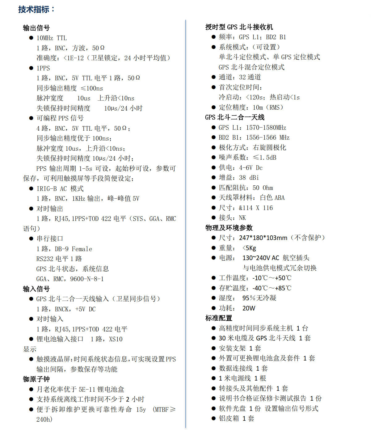 HJ5435-BDV1 便攜式G選用高精度銣原子鐘和高精度授時型GPS北斗接收機,采用獨特的頻率測控技術,對銣鐘的輸出頻率進行精密測量與校準,使GPS馴服銣鐘的輸出頻率精確同步在GPS或北斗系統上,準確度優于1E-12,不用進行校準就能提供高精度的頻率信號。HJ5435-BDV1 同步裝置不但提供了高精度的頻率標準,還同時提供了“復現”的UTC時間基準。GPS或北斗馴服銣鐘輸出的10MHz信號經過...